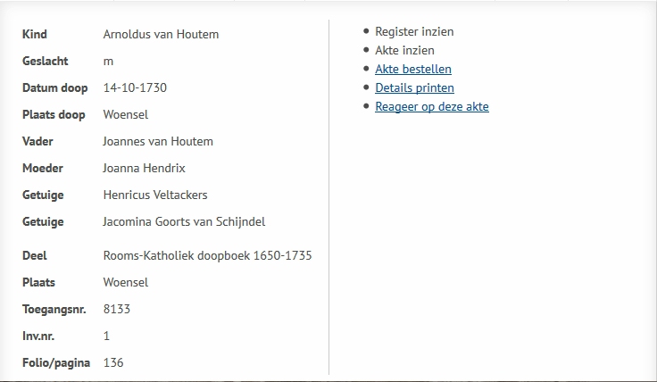Arnoldus van Houtem geboren 1730 (Woensel) huwde met Elisabeth Bajens