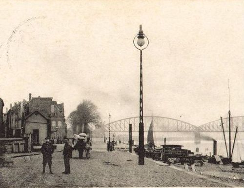 Nijmegen krijgt straatverlichting. Foto is van de Waalkade ± 1900
