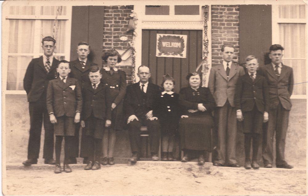 v.l.r. Hein(20), Tijn, Lowie,Wim,An,Jan(51),Zus,Han(48),Harrie, Jo(15),Marinus(24)