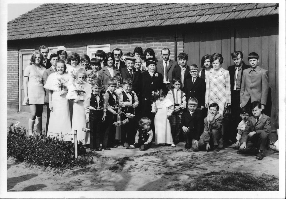 50 jaar huwelijk 1971 van Johannes en Johanna met de kleinkinderen en aanhang.
